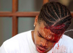 Harris was left with eight staples in his head, a broken wrist and a chipped tooth.
