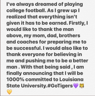 Crawford has committed to Louisiana State University in 2022.[7] He made the announcement on Monday, October 28, 2019 via Twitter. Prior to committing, Crawford had offers from other colleges including Washington State University, University of Southern Mississippi and Southern University.