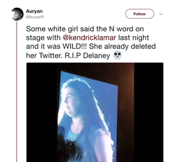 Delaney is an American teenager who gained viral fame after videos circulated on Twitter during the moments when she said the N word while onstage with Kendrick Lamar.