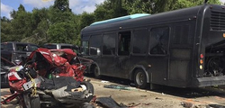 On August 28, 2016, Rodriguez drove a bus unlicensed and slammed into a fire truck attending a previous highway crash, killing two and injuring 41.