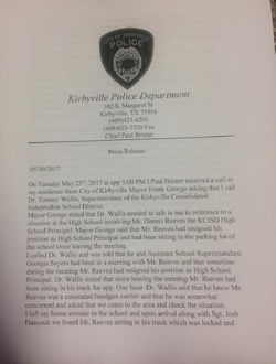 According to KFDM News, superintendent Wallis claimed last week that he and assistant superintendent Georgia Sayers went to the high school last Tuesday for a meeting with Reeves on routine, standard school-related issues.