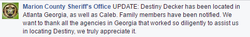 On March 31st, it was reported that Destiny and Caleb were found safe in Atlanta. [0]