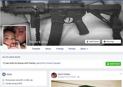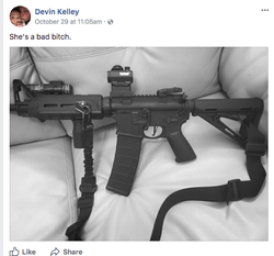 Devin Patrick Kelley (February 21, 1991- November 5, 2017) was an American mass murderer responsible for the Sutherland Springs church shooting, during which he opened fire on the congregation of the First Baptist Church in Sutherland Springs, Texas. At least 26 people died in the shooting.