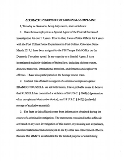 His roommate, Brandon Russell, having just come back from duty with the National Guard, was arrested for being the one responsible for having the parts to build an explosion.