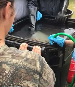 "When the raccoons tried to come up for air they had metal rods and they held them down with metal rods and when the raccoon would try to pop its head up they held water hoses in its face to drown it," the mother said.