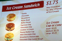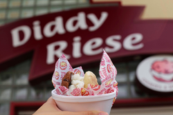 Diddy Riese Cookies is an American cookie eatery based in Westwood, Los Angeles. [1] Diddy's sells cookies, ice cream, brownies, Hawaiian shave ice, coffee, and milk. The restaurant is something of a local legend for its made-to-order ice cream sandwiches. Customers pick out the types of cookies from a dozen made fresh in-house, as well as a scoop of ice cream from two dozen Dreyer's flavors. In 1995, Diddy Riese created the made-to-order ice cream sandwich offering different flavor combinations as a featured item on the menu. Customers can choose 2 cookies from a selection of 10 flavors to pair with one flavor of ice cream from a selection of 12 flavors. It is widely held that Diddy Riese Cookies, because of their low discounted prices coupled with their high quality, sells more fresh, handmade cookies daily than any other single retail cookie store in the United States.
