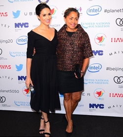 Photo of Doria Ragland and her daughter, Meghan Markle, at a red carpet event.