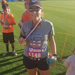 Dr. Jennifer Gray Golick at a game of softball in a park.