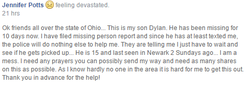 His uncle believes that he is a runaway and is staying with friends in the area.