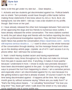 Dyne Suh is a 25-year-old Asian-American woman studying law in Riverside, California. [1]