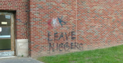 The message read“Leave Niggers” was 5-feet-wide and scrawled in black lettering on two lines.