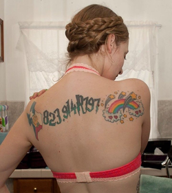 On July 23, 2008, shortly after receiving her Master's degree, Ela Darling got a tattoo on her back of the Dewey Decimal and Cutter number for Harry Potter and the Philosopher's Stone . [20] She got it on her 22nd birthday after receiving her Master's degree