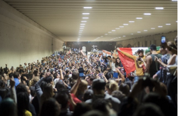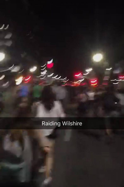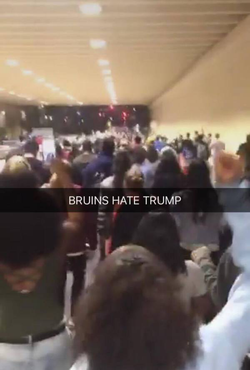The night of the 2016 US Presidential election students from UCLA marched in protest down Gayley towards Wilshere in the Westwood neighborhood in an attempt to block the intersection of Wilshere and possibly the 405 Freeway entrance.