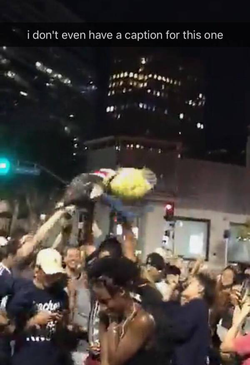 Others lit up a Trump looking doll on fire by thrashing it into a trash can.
