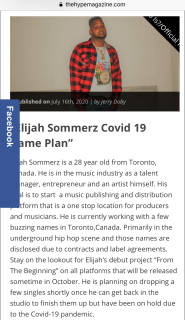 Elijah Sommerz was a random victim of gun violence in late October ,21 2011 his brother/ confidant Nigel Caine who was an upcoming Toronto Rapper that went by the stage name of Young Skrillz later succumbed to his injuries in hospital from the fatal shooting.[3]