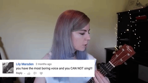 GIF of Elise Ecklund playing a song she wrote with lyrics that have only hate comments.