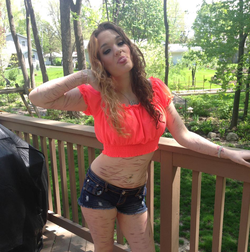 When the abuse stop, she did not know how to cope, so she turned to Self-harm. The cuts became worse over time and she constantly wore sweatshirts to hide her scars. For over 8 years, Emily has been battling Anxiety, Depression, and PTSD and has totaled 237 stitches & 58 staples on her body. The last time she self-harmed, it almost killed her. She has been clean for over 3 years. Emily considers every day not harming herself as a victory. [3]