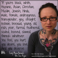 Emily Moran Barwick is an Animal-liberation Activist, International Speaker, Artist, Writer, Educator, and the Creator of Bite Size Vegan. [undefined]