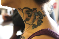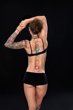 As an Artist, she's sought ways to reach non-vegans in creative ways, and some methods have been seen as extreme. On January 27th, 2013, the day designated by the United Nations as the International Day of Commemoration in Memory of the Victims of the Holocaust she was branded on the side of her abdomen with a steel cattle iron in front of a rusted shed by a desolate railroad track. [undefined] [10]The expansive scar reads "269", which symbolizes a calf who was born into an Israeli dairy farm and whose life will be cut off not long after it started was saved, near his scheduled slaughter day. By branding his number her body, she wanted to show her solidarity with the victims of the animal holocaust all around the world, remembering to never forget. [undefined]