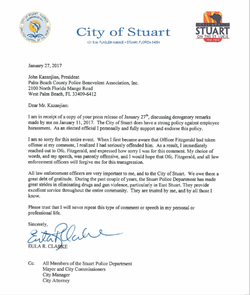 She publicly apologized for the insult and wrote a letter to Stuart's police department.