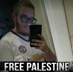 Photo Everitt Aaron Jameson posted on Facebook with the slogan "Free Palestine"