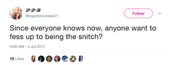 Tweet by Logan about trying to identify the person who ratted her out to the police about the break in.