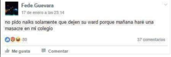 Fede escribe: "No pído nalks solamente que dejen su ward porque mañana haré una masacre en mi cologio".