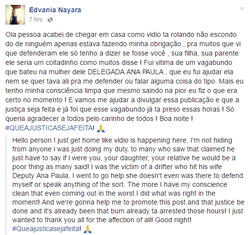[12] Nayara também levou para o Facebook e disse que ela estava apenas fazendo seu trabalho e que o ataque foi completamente desnecessário.