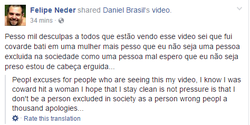 [15] Depois que Felipe foi libertado, ele fez uma página no Facebook de si mesmo e pediu desculpas por suas ações.