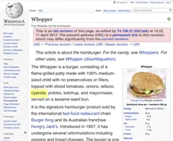 On April 4, 2017, Burger King posted a 15-second demo advertisement about the Whopper. In the ad, a man prompts his Google Home (a voice-activated speaker) to start reading a description of the Whopper from Wikipedia.
