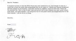Frank “FX” Giaccio wrote a letter to the president of the United States Donald Trump about mowing the lawn for the White House as a service. His intention in writing to the president is to have an opportunity to show the rest of the country that kids his age are ready for the future.