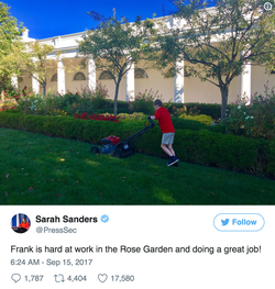 On September 15th, 2017, Frank was given the opportunity to mow the lawn at the white house.