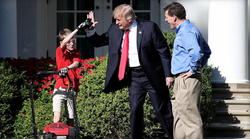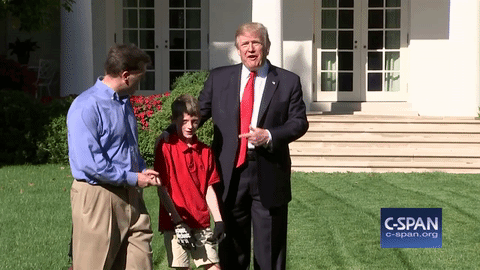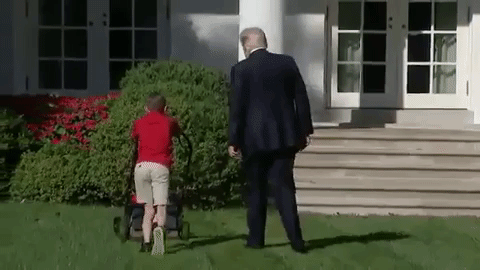 When Trump asks Frank if he had, "Done this before", that is mow lawns, Frank responds, "no". Trump then addressed the press and pointed with his thumb at Frank and his father, saying: "this is the future of the country".