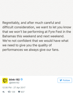 Blink-182 canceled their performance after they heard the event was in disarray.