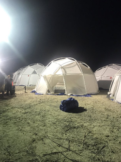 When attendees arrived on the festival grounds, they were greeted with half built tents that were originally designed for disaster relief and mountains of trash.