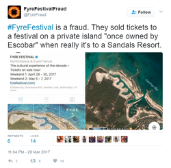 On March 28th, a Twitter account called Fyre Festival Fraud came online and started warning people about the impending disaster. In addition, anonymous reports came from the account saying that the festival grounds were not ready and that the private island pitch was a fraud, the festival was taking place steps away from a Sandals Resort.