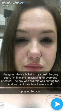 Of the 14 people shot, two are battling gunshot wound to the head. Gage Smock was one of the wounded victims who was shot in the head. One of the wounded victims, Hannah Dysinger, publicly forgave Parker for his actions, and stated that she is praying for everyone involved in the tragedy. Another victim in the shooting, was special needs student Daniel Austin, who was hugging and high-fiving friends before being shot in the arm.