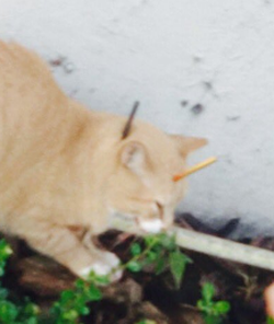 The incident occurred in April 2017, Strushie was found, bleeding and wounded, near the Franklin hotel with an arrow through his head by people who feed the stray cats that live in the area.
