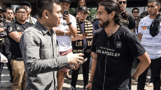 MC Gia Thành on set interviewing the first Vietnamese American soccer player on United States national soccer team Lee Nguyen of LAFC Los Angeles Football Club in 2019.