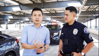 MC Gia Thành on set filming a show about police officers' work in 2019.