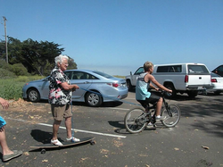 Photo of Gideon riding with his Grandma.