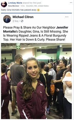On Wednesday, February 14, 2018 Gina Montalto was killed in the Marjory Stoneman Douglas High School Shooting, which left at least 17 students and adults dead. [1]