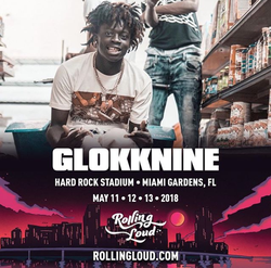GlokkNine performed at the 2018 Rolling Loud Festival on May 13, 2018 in Miami, Florida hitting the same stage as Lil Pump, J. Cole, Travis Scott and Future among others.
