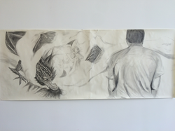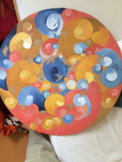 Citation Linkywqaugeunhowzrcj.public.blob.vercel-storage.comWhile after studying abroad in France for the summer, Gordon Lewis explores Iranian art patterns and Henri Matisse's palette to create this work.The painting is done on a cardboard circle and the negative space is used to create the silhouettes of pigeons.The surrounding background is that of clouds, a daily fascinating spectacle in France.Gordon Lewis expresses the seeming banal existence of life is wonderful transformation when travelling and discovering new strokes and paints.