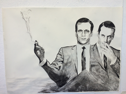 Citation Linkywqaugeunhowzrcj.public.blob.vercel-storage.comRegarding this work Gordon Lewis stated "In the portrait I tried to capture the idea that a person is ever changing and is the individual they are in the present moment.A person is a manifestation of entropy in the sense of where they come from and their choices in life.The accumulation of these portraits changed myself and registered each moment in time similar to zen monk's practice of Ensō.John Hamm plays a character that inhabits two separate persons.The line between the two is fuzzy but he is two separate persons really and when he inhabits a room as Don he is Don Draper."