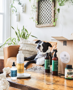 Photo ofGrove Collective products as part of a promotion featuring pet-friendly products.