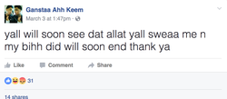 Although he has a young daughter to look after in which he says is his: "My Errthangg", he continues to display himself on Social media as mad thuggish. He has shared photos of himself holding cash as if playing dice and gambling.