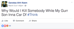 In early March, 2017, she posted a Facebook Live video of her and Hakeem ranting about shooting someone following the death of 19-year-old Drekeiston Alex. They then took a photo of themselves posing as Bonnie & Clyde as Ashley holds an assault rifle.