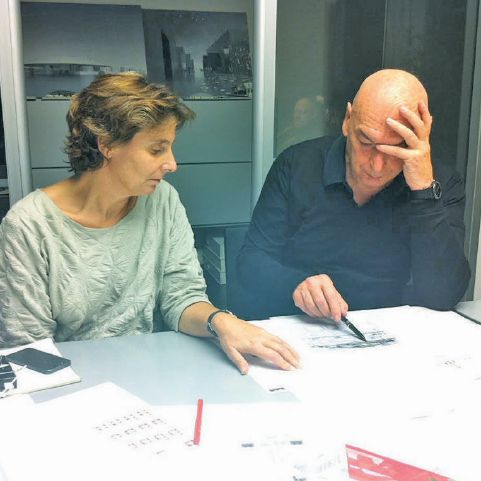 Hala Wardé et Jean Nouvel travaillant ensemble sur le projet du Louvre Abu Dhabi; © Randa Taki Eddin - Paris