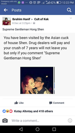 Group member Ibrahim Hanif made a meme urging group members to comment "Supreme Gentleman Hong Shen" to get rid of cuckoldry.